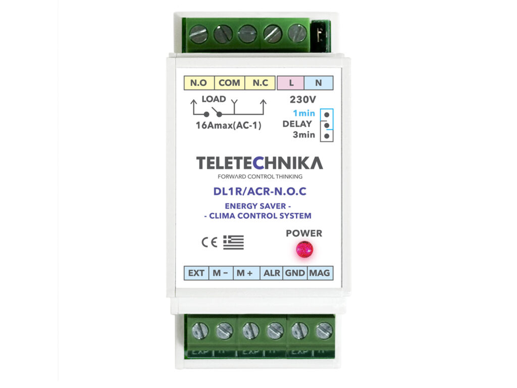 • Έλεγχος κλιματισμού: Relay επαφής 16Α (resistive load-ac1), με τρία (3)  λεπτά καθυστέρηση στο σβήσιμο, μετά το άνοιγμα μπαλκονόπορτας με παρουσία μπρελόκ, ή 1 λεπτό μετά την απομάκρυνση του μπρελόκ.