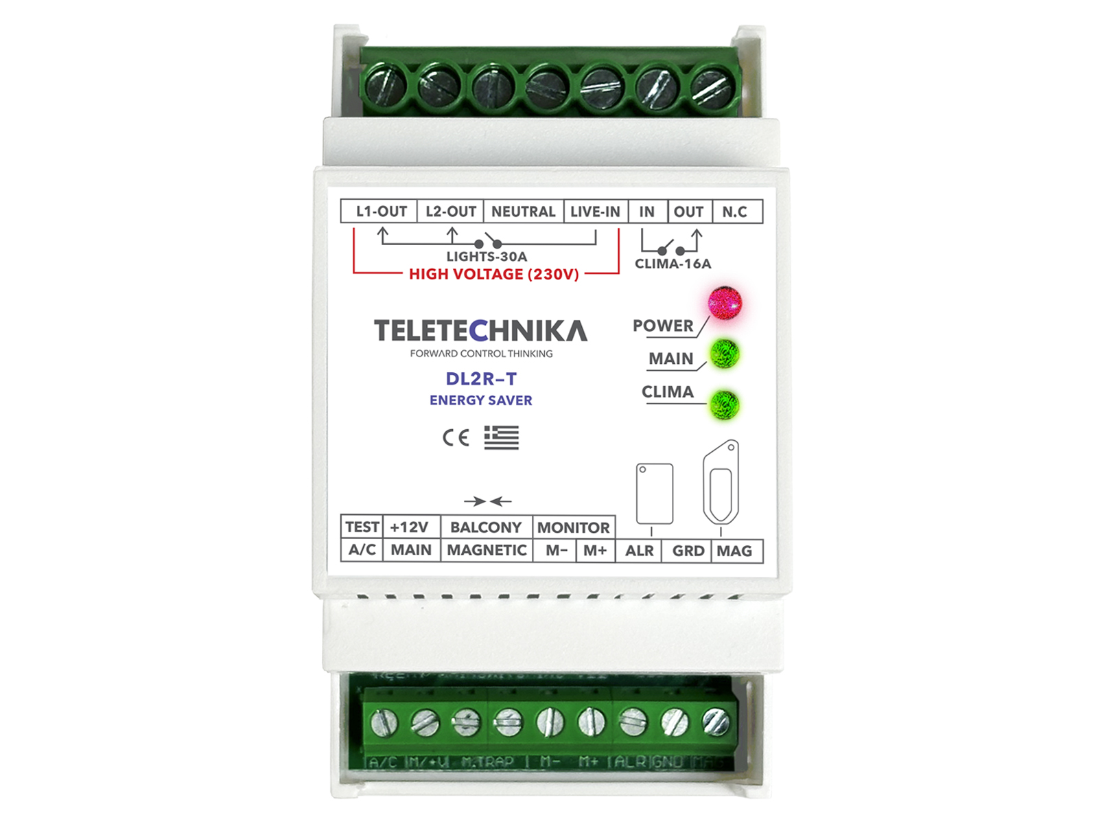 • Έλεγχος φορτίων: Relay επαφής 30Α (resistive load), με 1 ή 3 λεπτά (κατ’ επιλογή) καθυστέρηση στο σβήσιμο, μετά την απομάκρυνση του μπρελόκ.