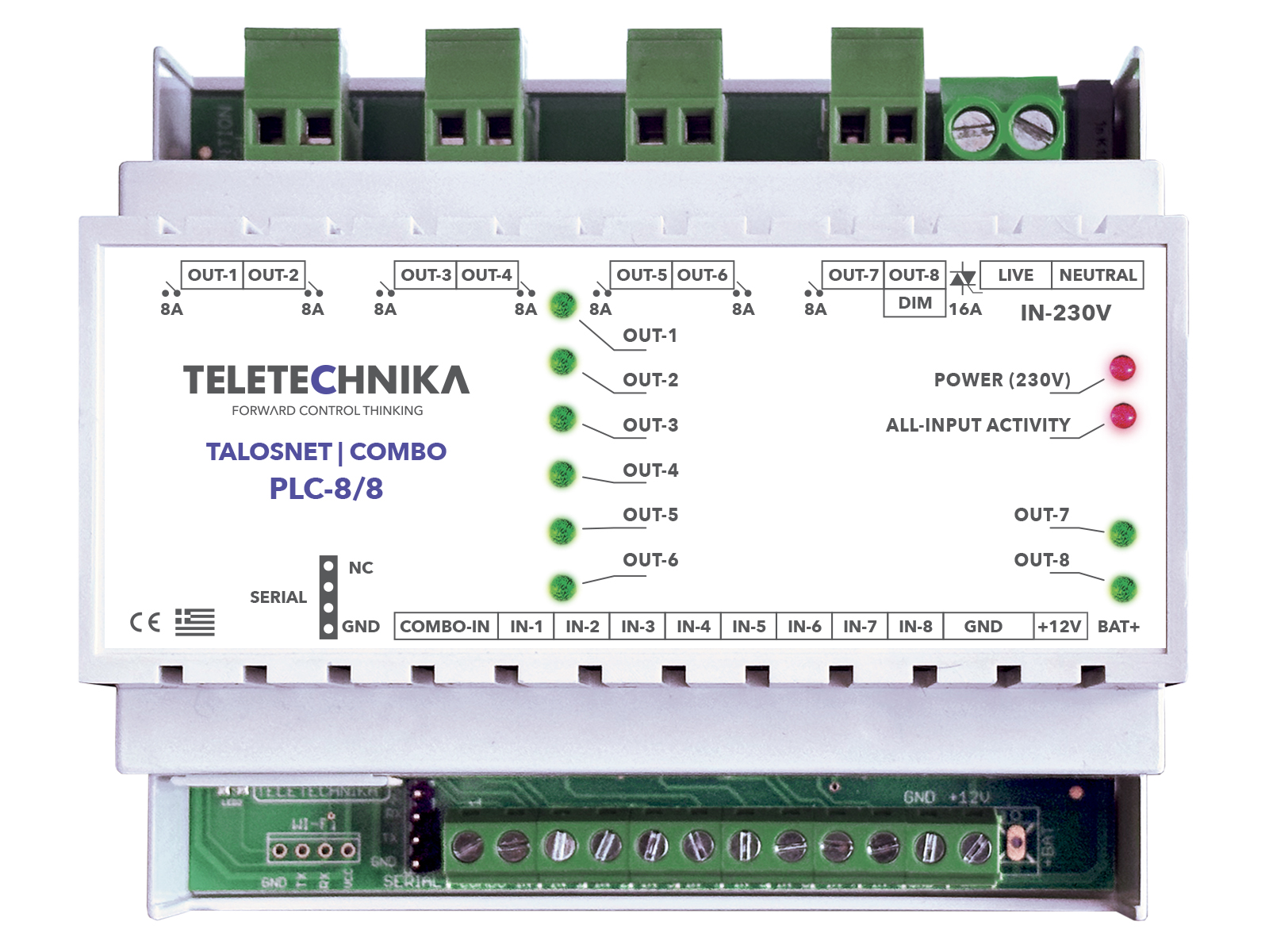 – 7 έξοδοι μέσω Relay φορτίου 8Α και 1 έξοδος μέσω triac φορτίου 16A (DIMMER).